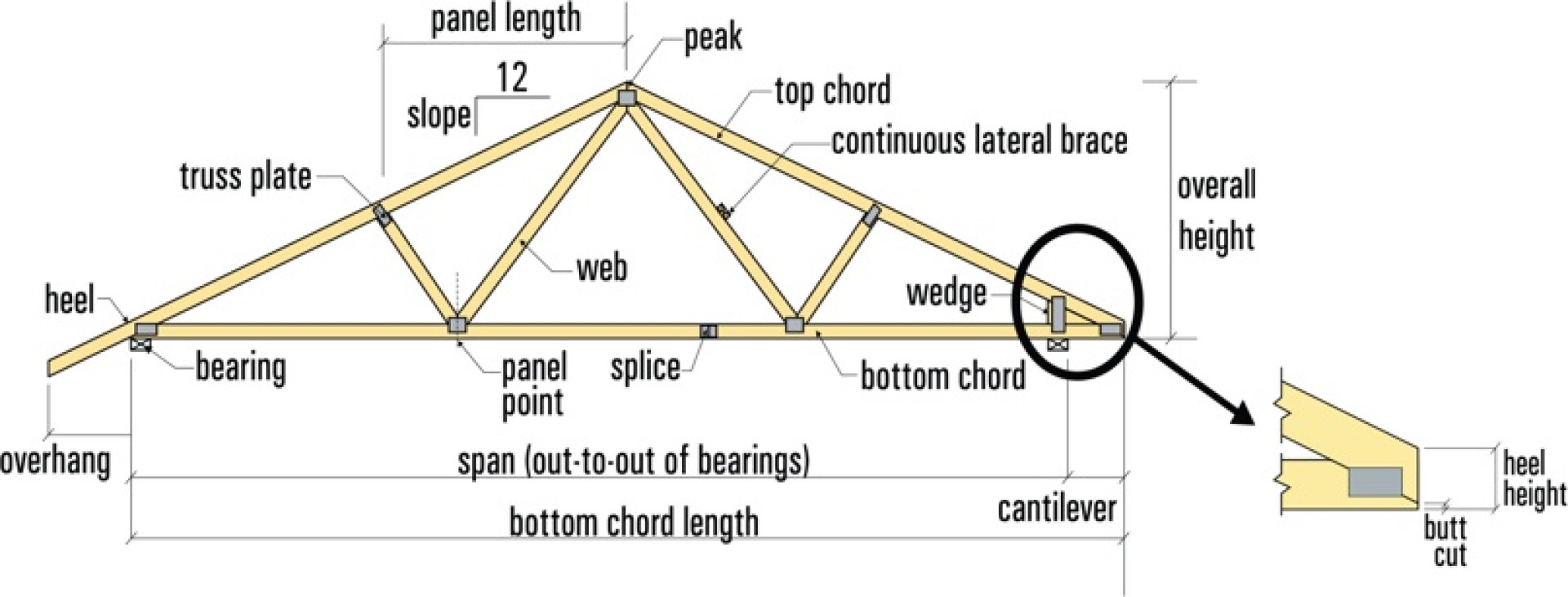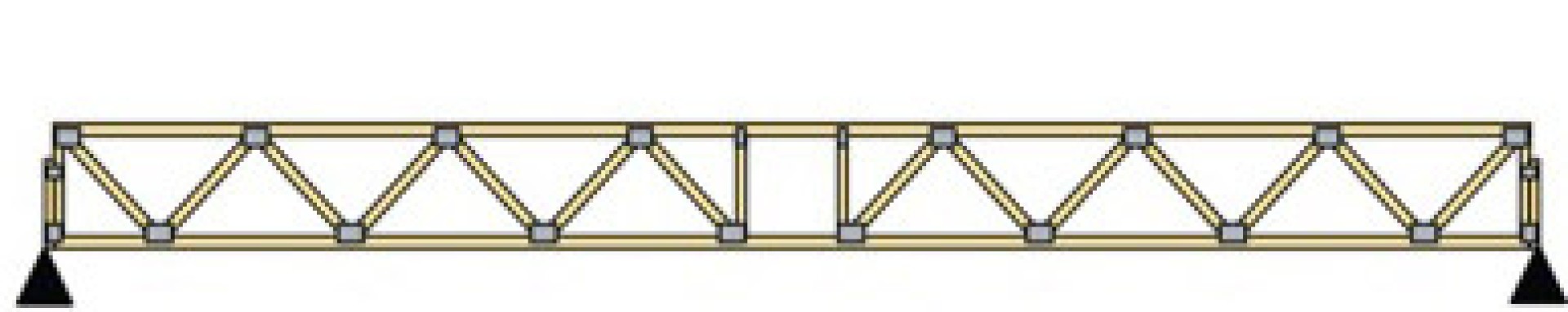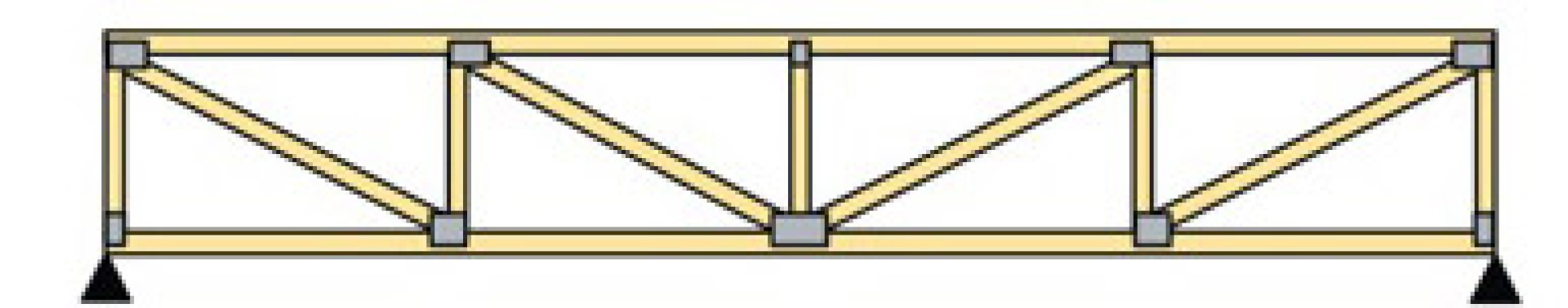 The panel chord or flat truss gets its name because its top and bottom chords run parallel to each other. This type of truss is perfect for floor construction.